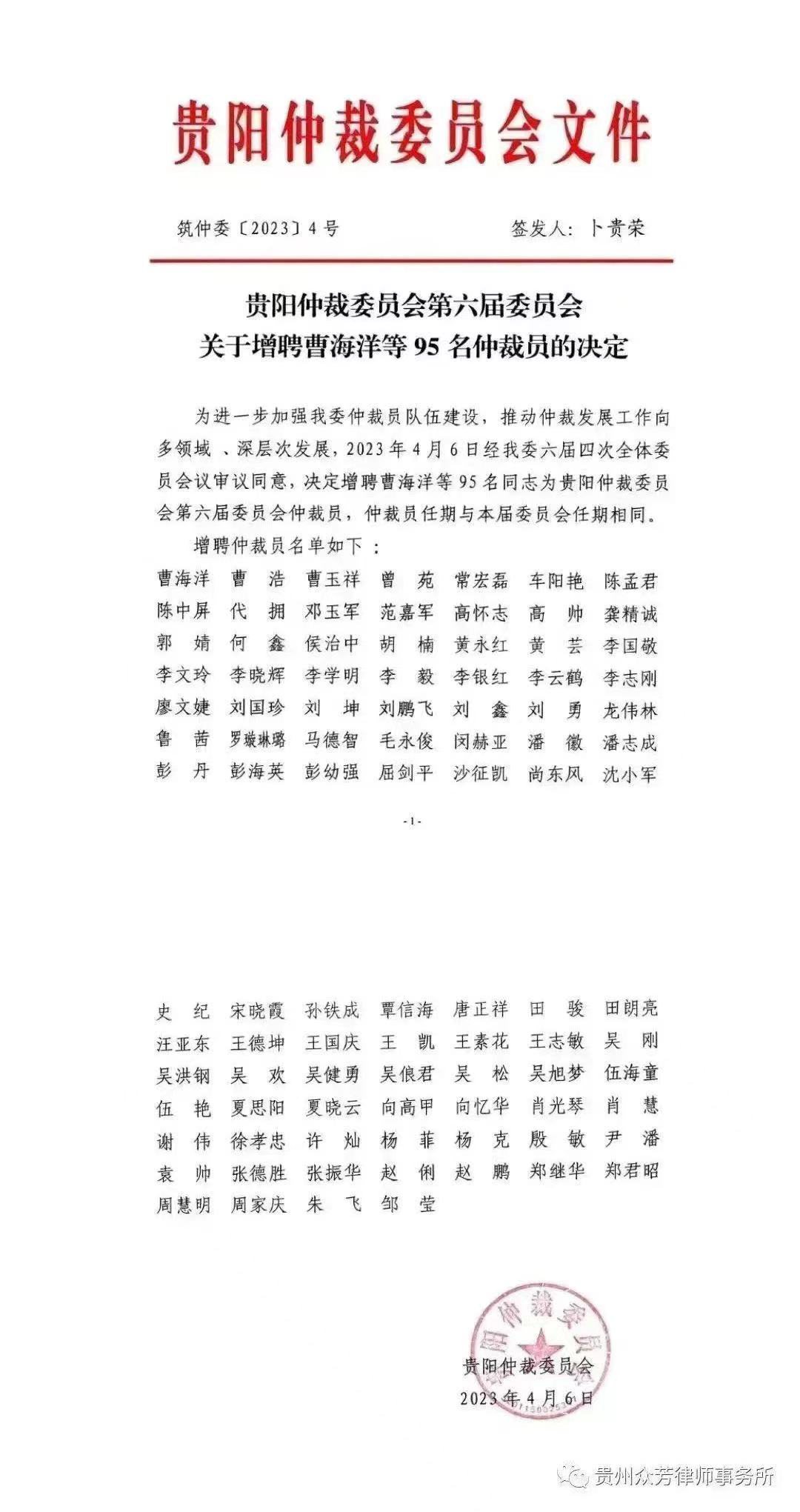 为进一步加强仲裁员队伍建设,推动仲裁发展工作向多领域、深层次发展,近日,经贵阳市仲裁委员会六届四次全体委员会决定增聘95名同志为贵阳仲裁委员会第六届委员会仲裁员。我校BETWA西汉姆联彭丹、杨菲、龚精诚、李晓辉、车阳艳等老师获聘为贵阳仲裁委员会仲裁员。贵阳仲裁委员会是贵阳市人民政府依照《中华人民共和国仲裁…