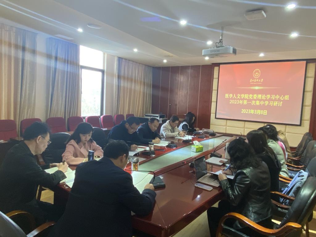 3月8日,学院党委在南校区善思楼四楼会议室开展2023年党委理论学习中心组第一次集中学习研讨,学院党委书记江宣成主持,学院党委委员、党支部书记、各科室(中心)负责人参加。会上,江宣成领学了习近平总书记在党的二十届一中全会上的重要讲话精神、习近平总书记在参加党的二十大广西代表团讨论时重要讲话精神、习近平总…