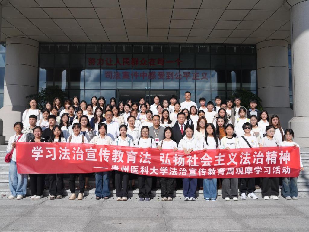 10月17日,学院党委副书记马琳娜带队到贵阳市南明区人民法院开展实践教学活动。南明区人民法院党组成员、政治部主任杨志、刑事审判庭庭长沈帅、政治部副主任周婧,学校党委宣传部新媒体中心主任李牧,学院教学科研管理科科长冯斌、团委书记马曾珍以及2025级法学专业学生等70余人参加此次活动,通过“参观+体验+座谈+共建…