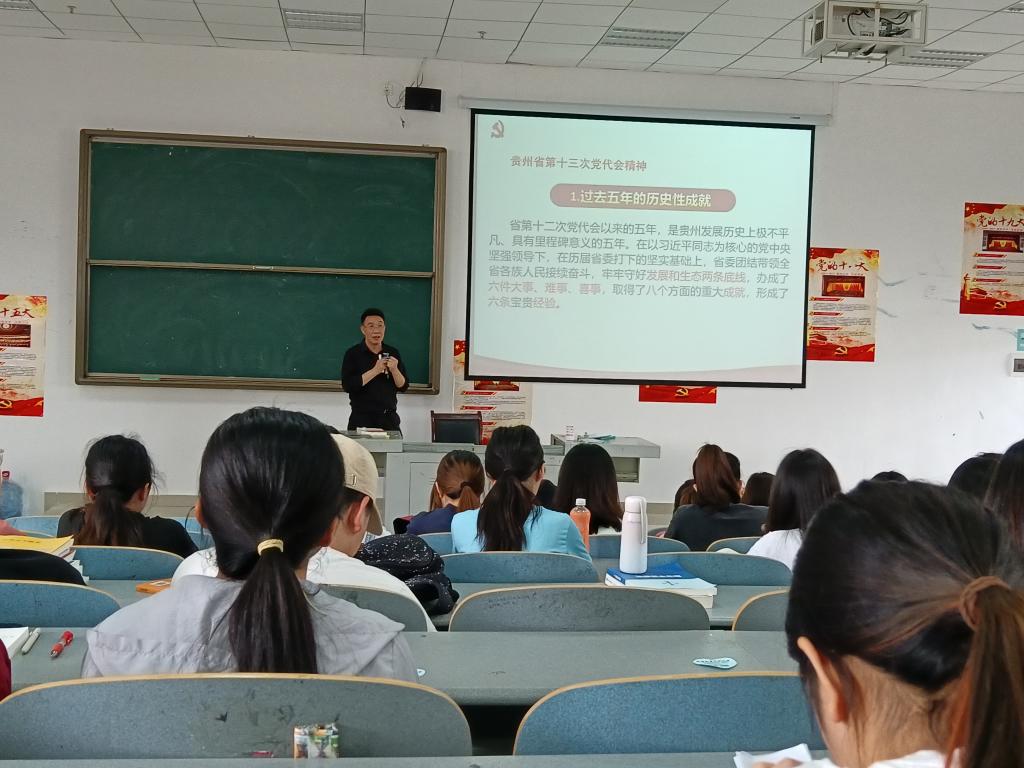 韩贞习以“深入学习省第十三次党代会和新国发2号文件精神,在青春的赛道上奋力跑出当代青年的最好成绩”为题,详细解读了省第十三次党代会和新国发2号文件精神。他指出,省第十三次党代会紧扣高质量发展主题,全面总结贵州过去五年取得的成就和经验,深刻分析面临的形势和挑战,科学谋划今后五年发展的总体要求、奋斗目标、重点任务和重大举措,充分贯彻了习近平总书记对贵州工作的重要指示精神,充分汇聚了全省人民的共同意志,必将有力引领全省上下奋力谱写多彩贵州现代化建设新篇章。新国发2号文件,明确了贵州未来发展的指导思想、战略定位、发展目标、主要任务、保障措施,充分体现了习近平总书记对贵州人民的亲切关怀和殷切期望,充分体现了党中央、国务院和国家各个部门对贵州省的极大关心、高度重视和大力支持,对贵州未来发展具有十分重大而深远的意义。韩贞习联系习近平总书记在庆祝中国共产主义青年团成立100周年大会上的重要讲话和在中国人民大学考察时的重要讲话精神,怀揣着对同学们的期许与期盼,希望同学们在青春的赛道上奋力跑出当代青年的最好成绩,努力成长为可以堪当民族复兴重任的时代新人。
