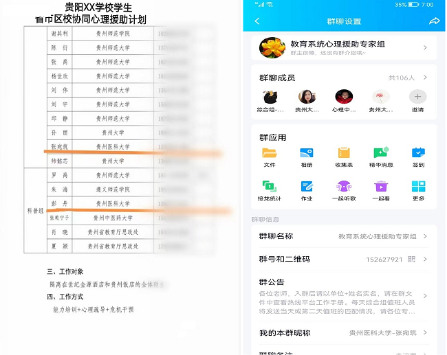彭丹、张宛筑、王凤是心理学专业的教师,在疫情疯狂席卷贵阳贵安之际,她们利用专长,积极参与“贵州省教育系统疫情心理援助平台”志愿工作,多次为全省师生和广大群众提供心理援助,积极疏导了师生和群众因为疫情带来的恐慌、焦虑等不良情绪。
