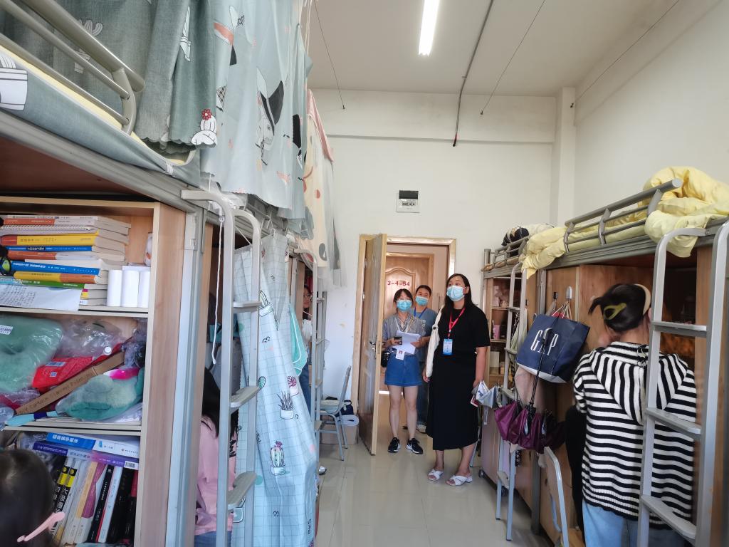 全面清查,住者入册,认真落实属地管理责任。为贯彻落实楼层长负责制,摸清教学区、生活区人数,检测筛查不漏一人,全力以赴做到疫情防控滴水不漏,江宣成、张贤、彭丹分别投入到教工住宅区、学生宿舍区的抗疫协调管理工作。为彻底摸清封控人数,确保一人不漏、一人不错,抗疫人员积极参与入户排查和筛查工作,针对学生、职工、家属、商户、租户、滞留人员等,逐层逐室负责上门登记造册、统计人员异动、清查人员类型等工作,同时按部就班定期组织全员核酸检测、抗原检测,并为特殊家庭、特殊人群负责上门检测服务。