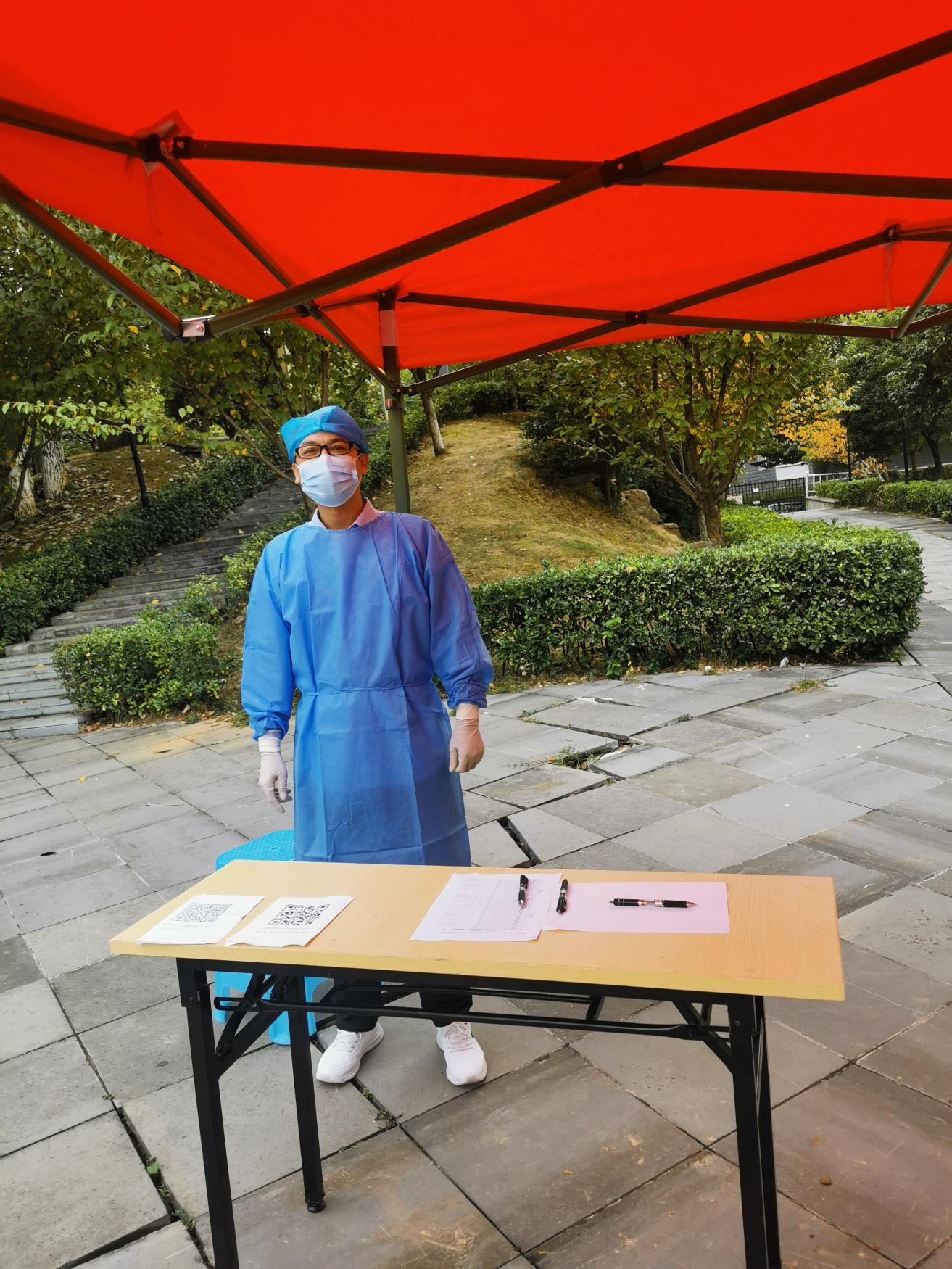 我院2019级应用心理学专业的陈令花同学是毕业市七星关区对坡镇中学的实习老师,由于政府人员不够,她志愿加入全镇抗原检测,不分昼夜、不畏艰辛参加抗疫工作。