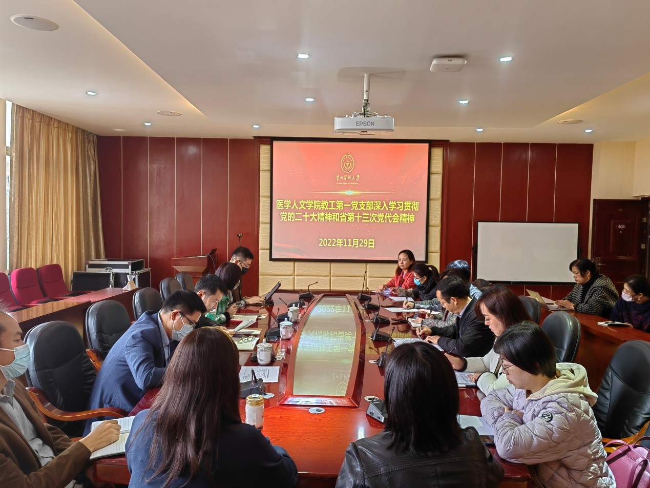 最后,刘文结合学院的教育教学、科学研究、就业创业、服务管理等工作,要求党员干部要始终不忘初心、牢记使命,深刻领悟“两个确立”,增强“四个意识”、坚定“四个自信”、做到“两个维护”,结合实际把党的二十大确定的各项任务不折不扣落实在多彩贵州大地上,努力为建成特色鲜明、同类先进、国内一流的百年医科大学添砖加瓦。