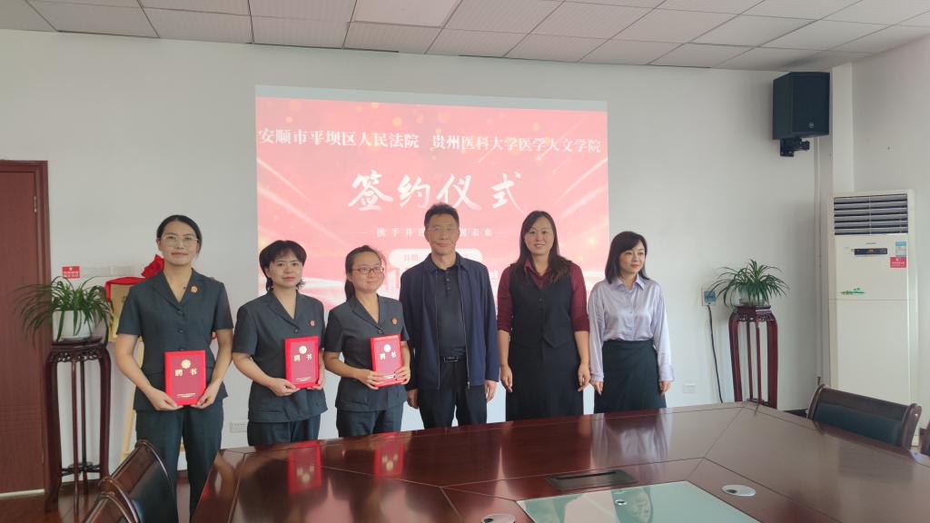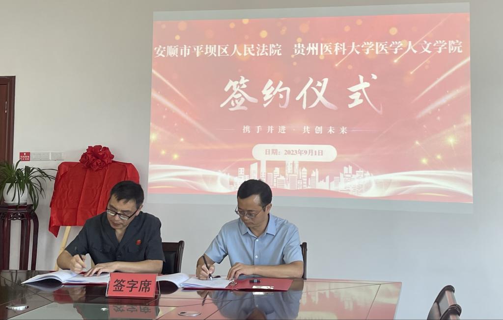签约仪式上,肖帮华对刘文一行表示热烈欢迎,介绍了平坝区人民法院的基本情况,并表达了共建合作的向好愿景。期望双方在服务法治建设的基础上,携手同行,探索应用型、复合型人才培养新通道。深入推进双方在法律实务、教学科研等方面的深度合作。