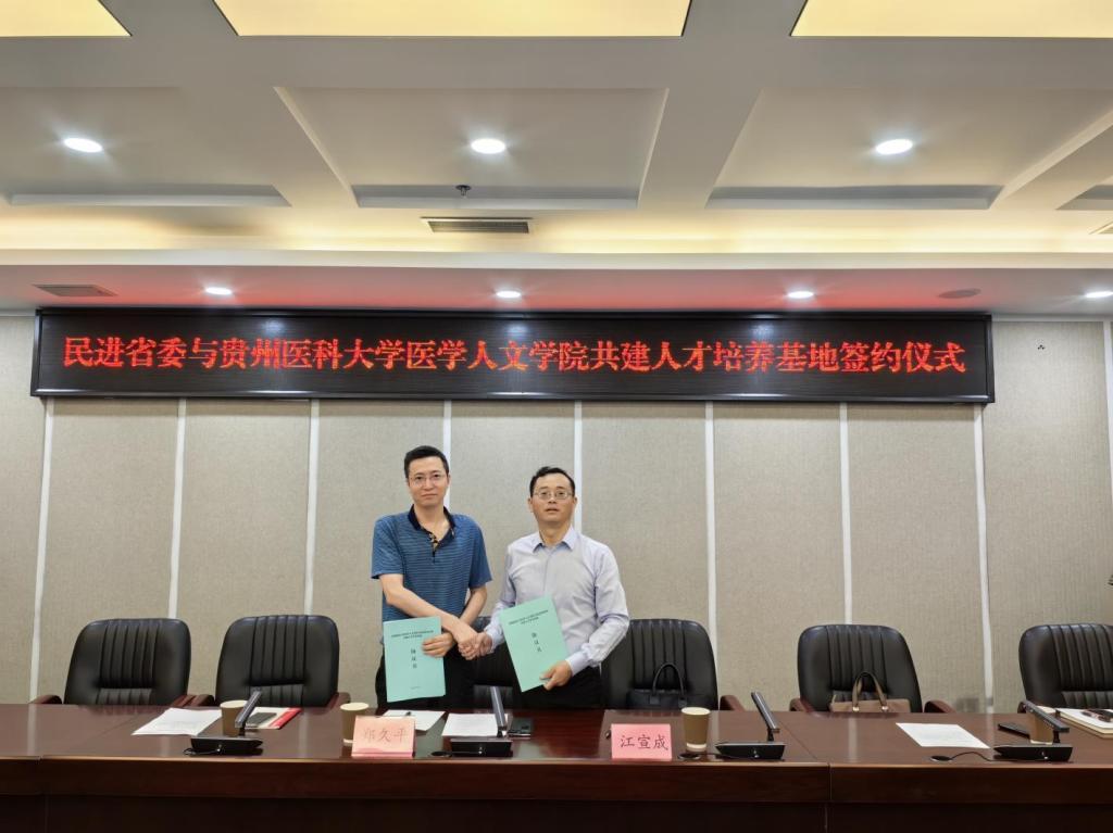 郑久平与江宣成分别代表民进贵州省委、BETWA西汉姆联签订了《BETWA西汉姆联与民进贵州省委共建人才培养基地协议书》。