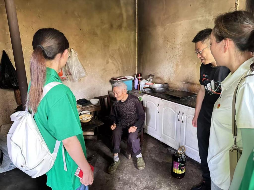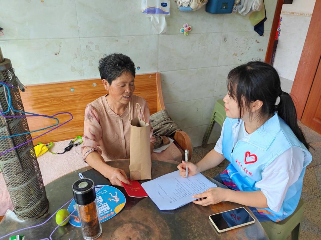 实践队组建专项慰问组,与驻村工作队协同深入香巴湖村生活相对困难的老党员、脱贫户、老年人家中开展关爱行动。队员们为老人送上大米、食用油、牙膏等生活物资,与他们拉家常、问冷暖,详细了解饮食起居、健康状况及生活需求。结合医学专业知识,队员们重点普及夏季防暑、慢性病管理等健康常识,提醒老人注意饮食安全与居家防护。