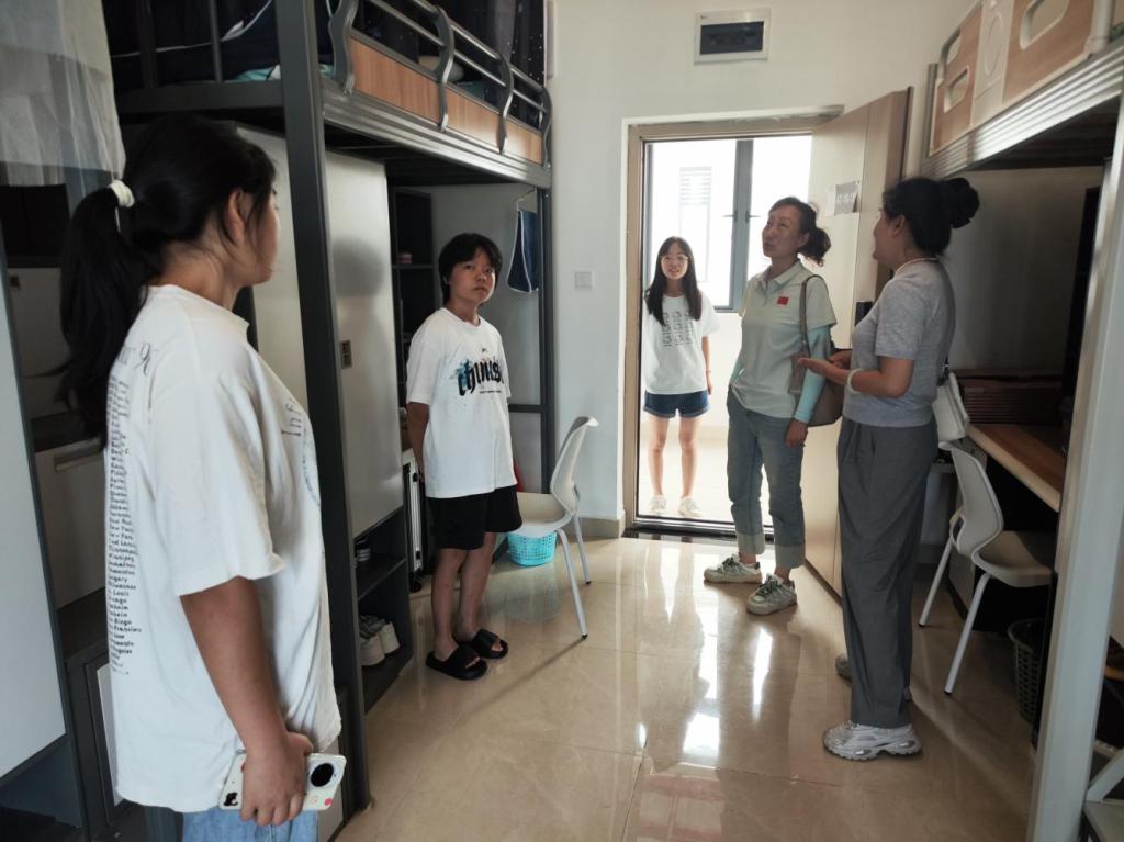 8月24日,学院党委副书记马琳娜带队,携新生辅导员走访新生寝室。每到一间寝室,都与新生及家长亲切交谈,详细询问新生的住宿适应情况、行李是否安置妥当、有无生活需求,并叮嘱新生:尽快适应集体生活,与室友互帮互助、友好相处;积极调整心态,快速融入大学学习节奏,遇到困难及时向辅导员、学长学姐求助。走访中,针对新生提出的“寝室设施维修”“食堂就餐推荐”等问题,现场协调解决,让新生及家长切实感受到学院“把学生放在心上”的育人温度。