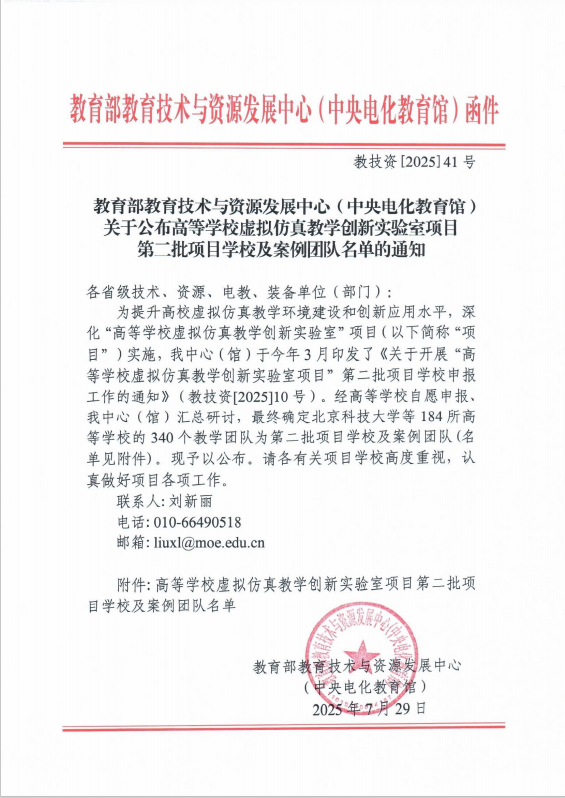 近日,教育部教育技术与资源发展中心(中央电化教育馆)印发《关于公布高等学校虚拟仿真教学创新实验室项目第二批项目学校及案例团队名单的通知》(教技资〔2025〕41号),BETWA西汉姆联心理学实验中心申报的心理学虚拟仿真教学创新实验室项目成功入选,标志着学校在心理学实践教学数字化转型方面取得重要进展,正式纳入国家级虚拟仿真教学创新平台建设体系。