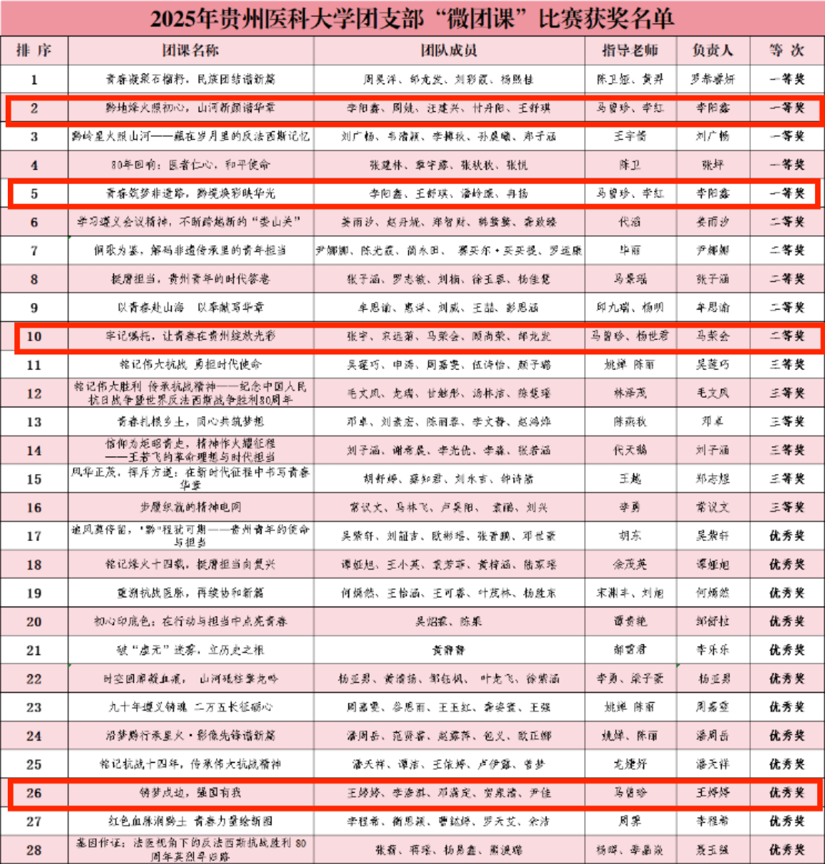 此次获奖是学院加强青年思想引领、深化团课育人成效的重要成果。学院将以此次比赛为契机,进一步推动“微团课”质量提升,鼓励更多团员青年以青春视角传递时代声音,在理论学习与实践探索中展现新时代医学青年的使命与担当!