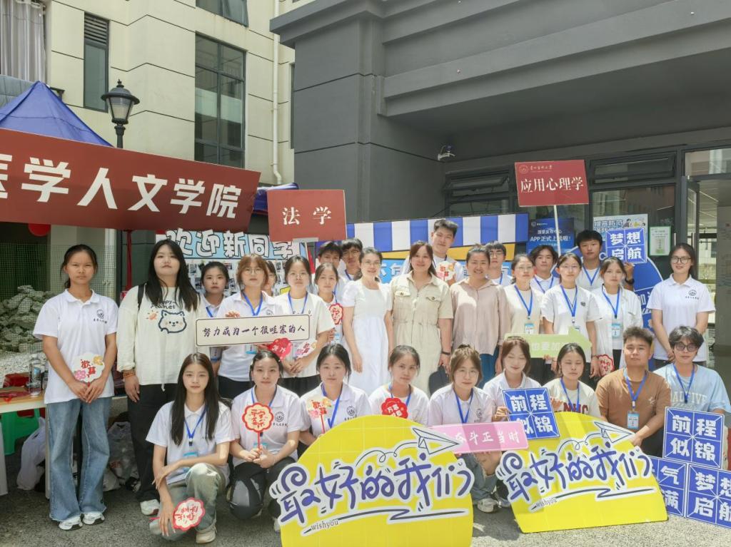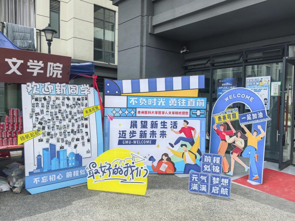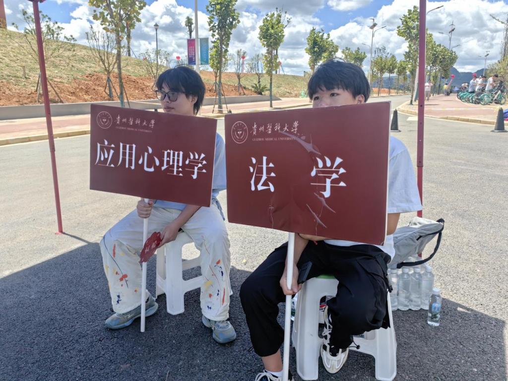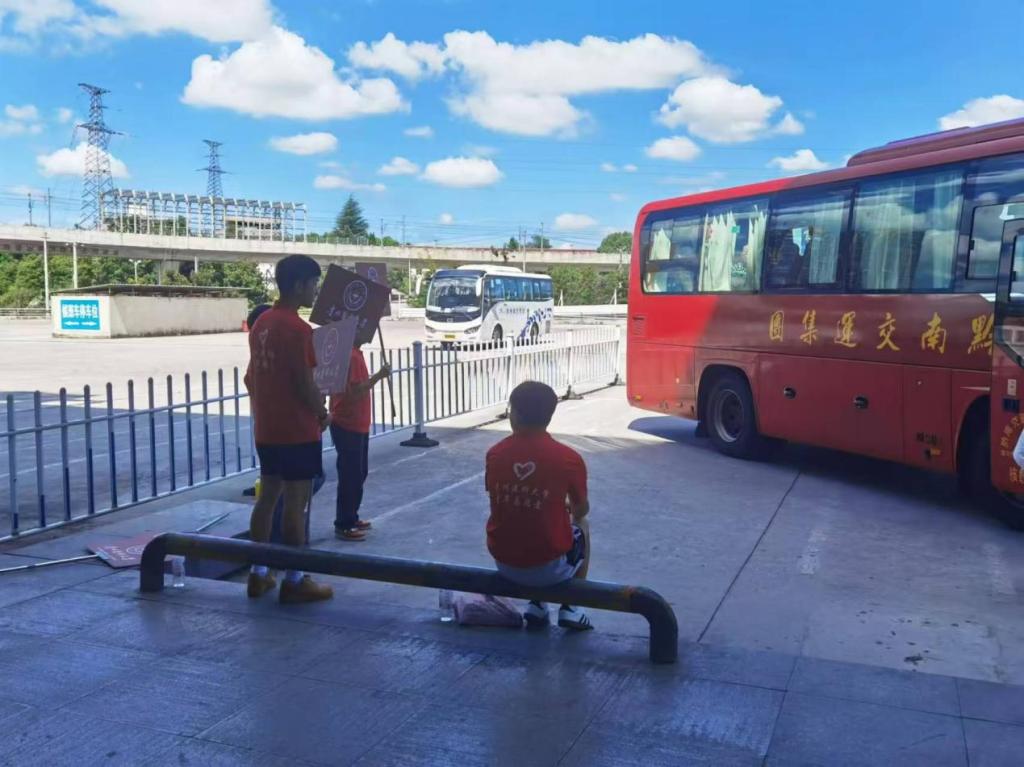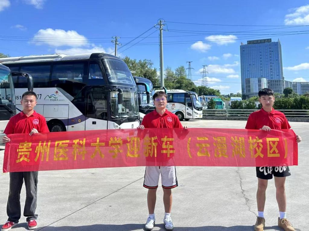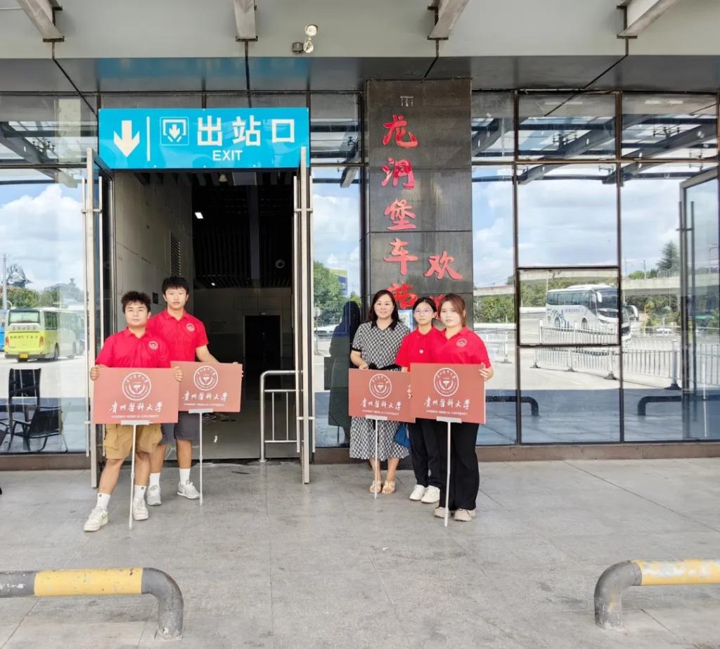报到当天,学院老师和学生志愿者身穿统一的志愿者服装,在贵阳龙洞堡车站接站点参加全校迎新,志愿者手持引导牌,热情地迎接每一位新生,为他们踏入贵医的第一站保驾护航。