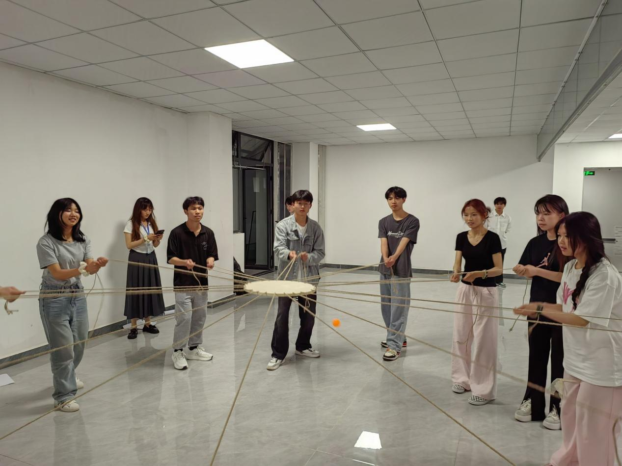 最后的“乒乓传送”环节更是考验了学生们的平衡能力和团队配合能力。