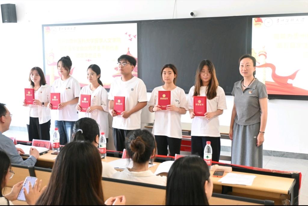 马琳娜为第五届优秀学生代表颁发荣誉证书。