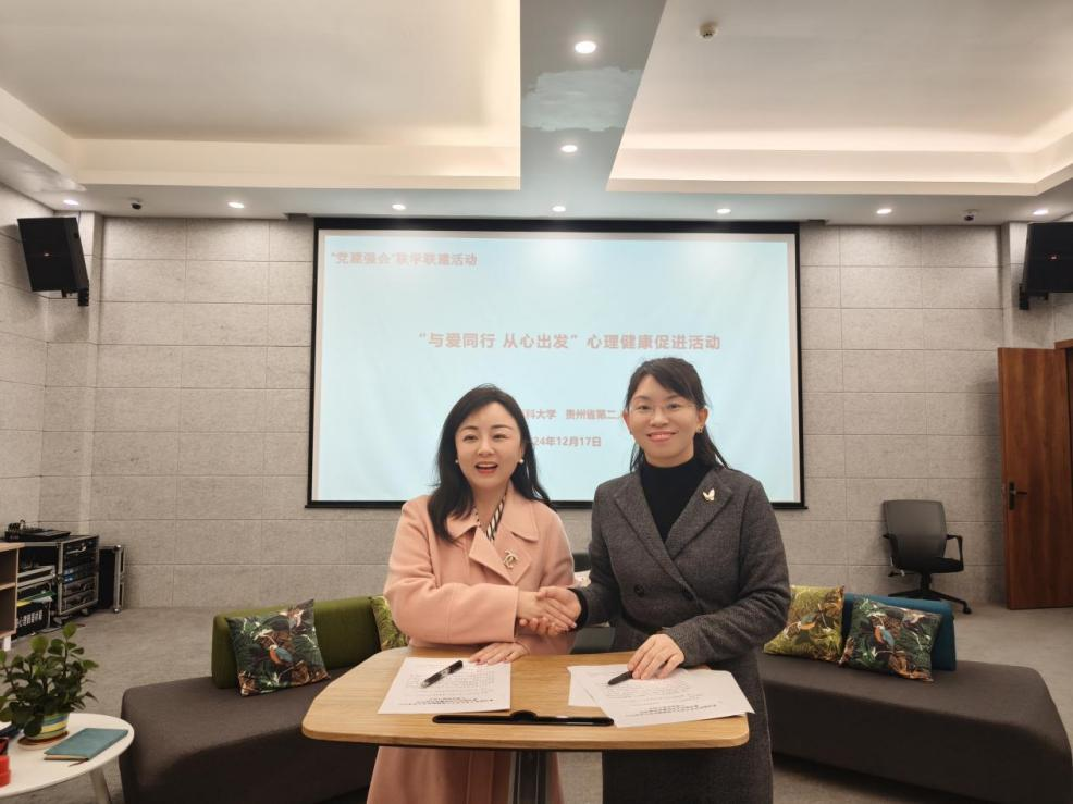 为深化党建引领,探索校医协同心理育人模式,充分发挥学校和医院、学校与学校之间的技术和资源优势,促进医疗与心理健康教育的深度融合,12月17日,BETWA西汉姆联教工第三党支部(BW·西汉姆联心理发展指导中心)联合贵州大学心理健康教育咨询中心、贵州省第二人民医院妇女儿童科,在贵大心理中心开展了“与爱同行 从心出发”心理健康促进活动,并签订结对共建协议。