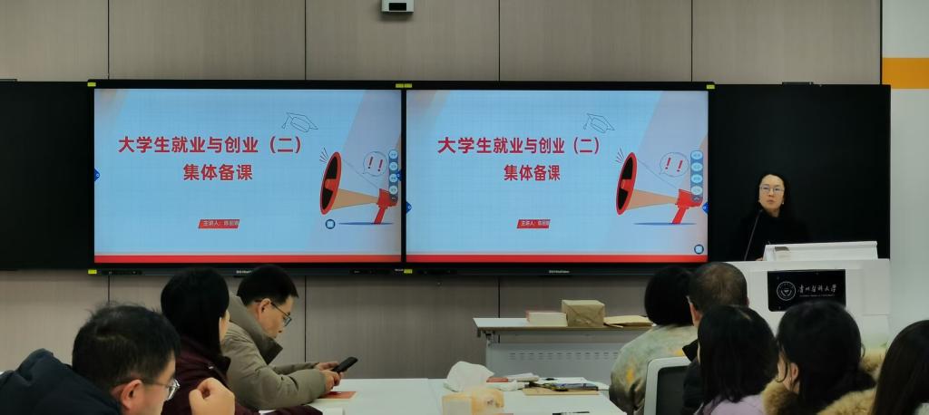 在集体备课环节,教研室教师分为两组开展活动。陈丽娜老师带领大家进行《大学生就业与创业(二)》课程的集体备课,围绕课程目标、教学内容、教学方法等方面展开深入研讨,并结合实际案例探讨如何更好地将课程思政融入课堂教学。冯游游老师则组织开展了《大学生就业与创业(三)》和《大学生就业指导(三)》两门课程的集体备课活动,重点讨论了课程内容的衔接与优化、教学资源的整合与利用等问题,为提升课程教学质量提供了有力支持。