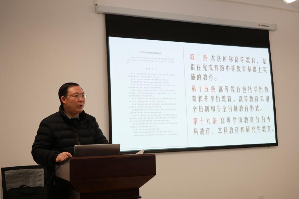 学院院长冯广卫围绕“如何做一名合格的大学教师”这一核心主题,用自身丰富的管理经验及教育教学阅历,从国家教育法律法规、教育教学工作及业务流程、如何平衡好教育教学和科学研究的关系等三个方面进行阐述。其中重点介绍了高校教师的权利与义务、新时代高校教师职业行为十项准则、教研室的常规教学管理工作、新进教师培养、如何平衡好教育教学和科学研究的关系等内容。冯广卫说,学院全体教师要坚守为党育人、为国育才初心使命,坚持立德树人根本任务,牢固树立OBE育人理念;要努力达成教育教学精彩、科学研究出彩、职业技能精湛、师德师风高尚的优秀教师。